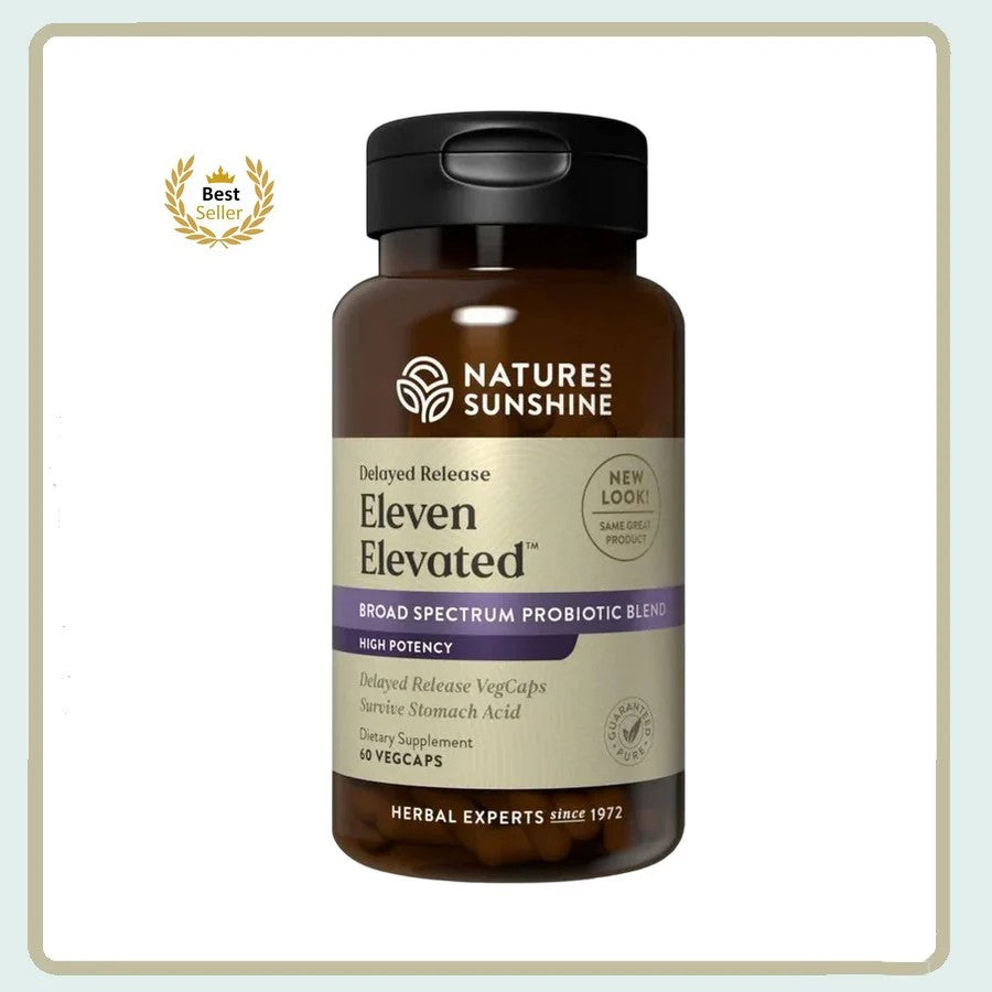 Renew or intensify your probiotic regimen with Eleven Elevated™. Providing 30 billion CFU of 11 strains of friendly bacteria per serving, Eleven Elevated™ helps support your microbiome, digestive health, immune system and rebalance your gut. Featuring delayed-release vegetable capsules. *