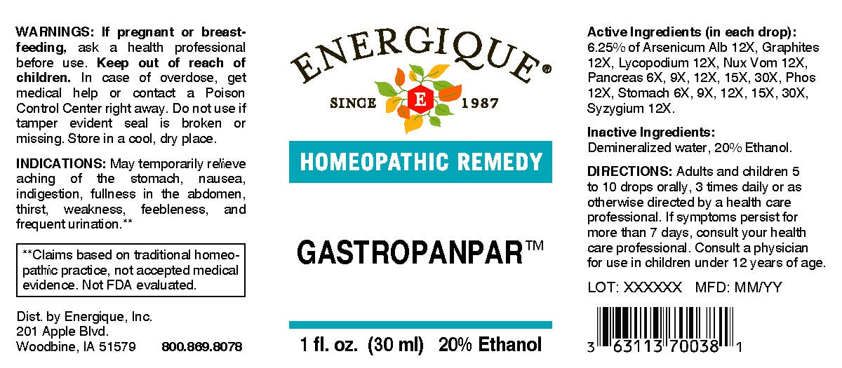 Gastropanpar™ may temporarily relieve aching of the stomach, nausea, indigestion, fullness in the abdomen, thirst, weakness, feebleness, frequent urination.