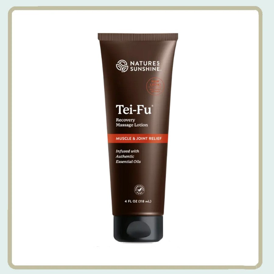 Tei-Fu® Recovery Massage Lotion provides warming, penetrating pain relief for sore muscles and joints. It may also provide temporary relief of minor aches and pains associated with backache, strains, sprains and bruises. Our pure, paraben-free formula is enhanced with arnica and ginger for next-level effectiveness both before and after activity. Additionally, these anciently known oils and emollients provide greaseless properties, so lotion goes on smoothly, leaving the skin soft and supple.