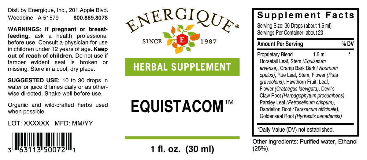 Our EQUISTACOM™ is a blend of horsetail, cramp bark, rue, hawthorn, devil's claw, parsley, dandelion, and goldenseal root to support the circulatory system.